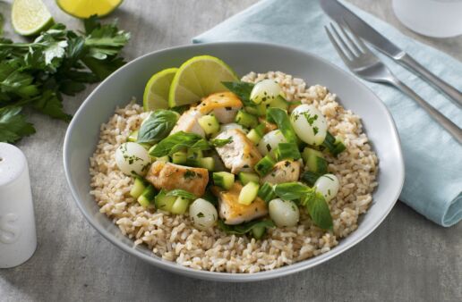 This chicken and rice recipe is a savory, well-balanced dish made with our Success® Brown Rice and a zesty artichoke salsa.