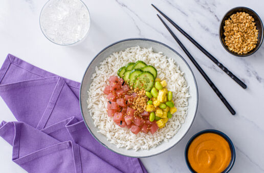 These hearty Chicken Shawarma Bowls combine Success® Basmati rice, seasoned chicken and plenty of vegetables into a takeout-inspired lunch or dinner.